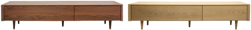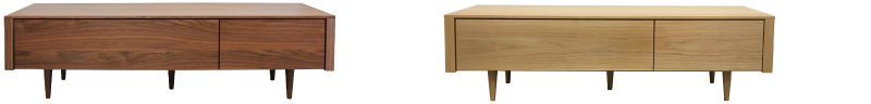 全て木材のみを使用した前板ですと、赤外線が透過しないため操作する度に開閉しなければなりませんし、よくあるTVボードですと、全面がガラスなどの赤外線が透過する素材であったり、ルーバー(隙間がある)デザインであったりするのですが、当社のTVボードは見た目は綺麗な一枚板のように見えて、尚且つ赤外線が透過するというデザインと機能性を兼ね備えた新技術を採用しております。
